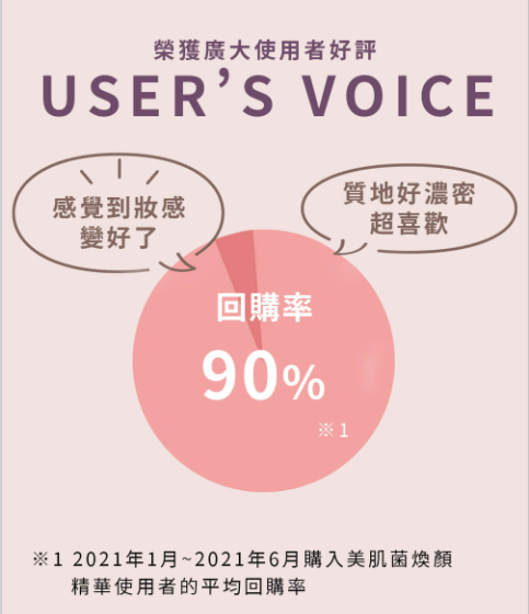 美肌菌煥顏精華是於洗臉後,在尚未擦任何保養品的肌膚上所使用的「精華液」。實際用過的人都很有感,更有高達90.3%的人會回購!
