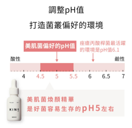 日本雖然米發酵液原料的保養產品雖然很多,但市面上販售的乳霜和乳液的pH值大多落在6~8,而這罐《美肌菌煥顏精華》則為最接近真實肌膚的約pH值5的弱酸性,打造美肌菌容易發揮活性的環境。