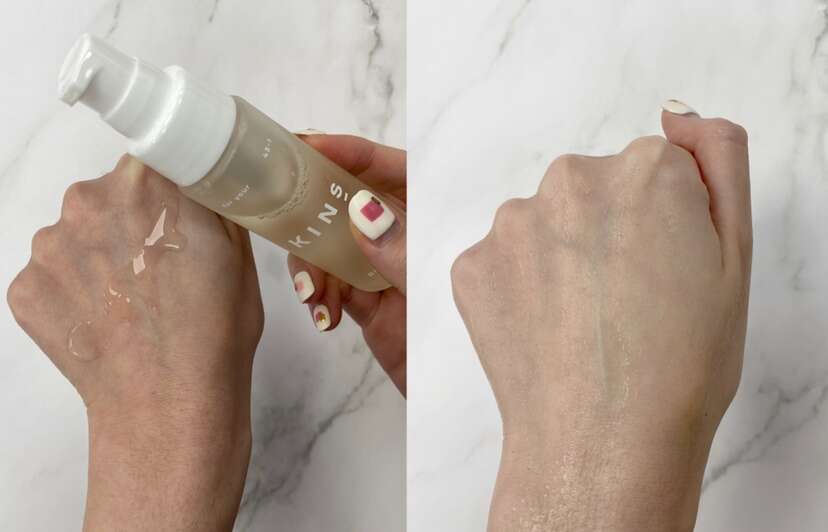 KINS美肌菌平衡肌活露是前導液和化妝水二合一,倒出來的質地是偏水的精華液